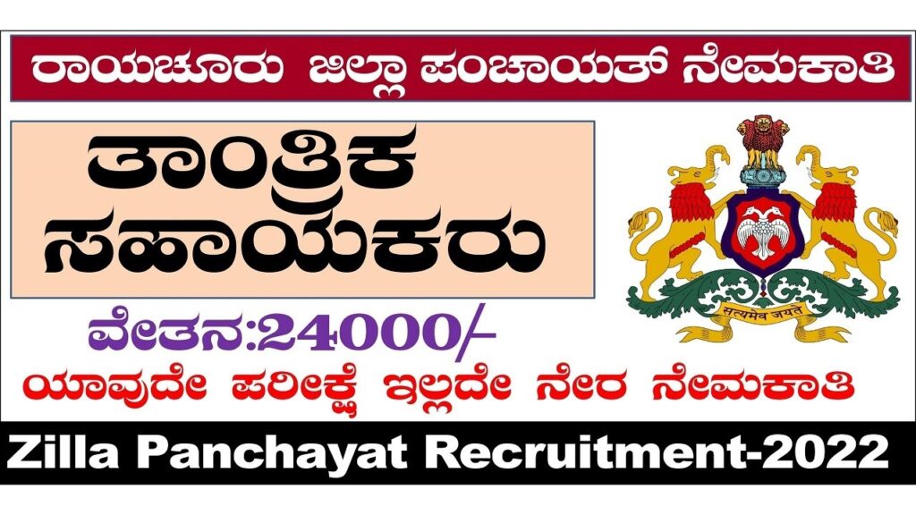 ರಾಯಚೂರು ಗ್ರಾಮಾಂತರ ಜಿಲ್ಲಾ ಪಾಂಚಾಯಿತಿ ಯಲ್ಲಿತಾಂತ್ರಿಕ ಸಹಾಯಕ ಹುದ್ದೆಗಳಿಗೆ ಅರ್ಜಿ ಆಹ್ವಾನ