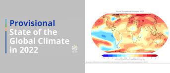 * 2022 ರಲ್ಲಿ ಜಾಗತಿಕ ಸರಾಸರಿ ತಾಪಮಾನವು 1850-1900 ಪೂರ್ವ ಕೈಗಾರಿಕಾ ಸರಾಸರಿಗಿಂತ 1.15 ° C ಗಿಂತ ಹೆಚ್ಚಿದ್ದು, 1.02 ° C ನಿಂದ 1.28 ° C ವರೆಗೆ ಇರುತ್ತದೆ.